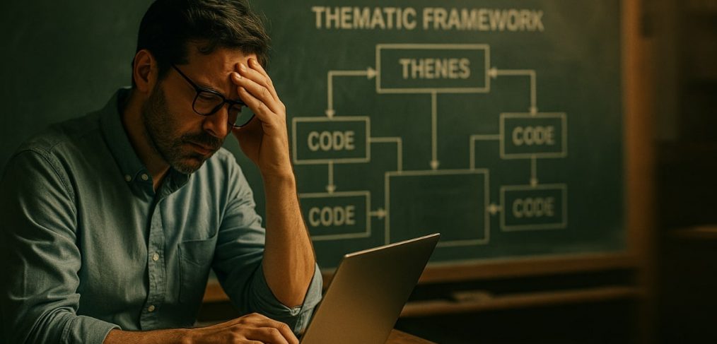 主题分析法(Thematic Analysis)是一种广泛应用于质性研究的资料解释方法,通过系统地阅读、编码与归纳,协助研究者从大量而杂乱的访谈文本中识别出反覆出现的意义、观点与经验模式。本文以浅显易懂的方式介绍主题分析法的核心概念与价值,并以“教师对AI教学的态度”为例,说明从初级编码到主题归纳与精炼的完整流程。
